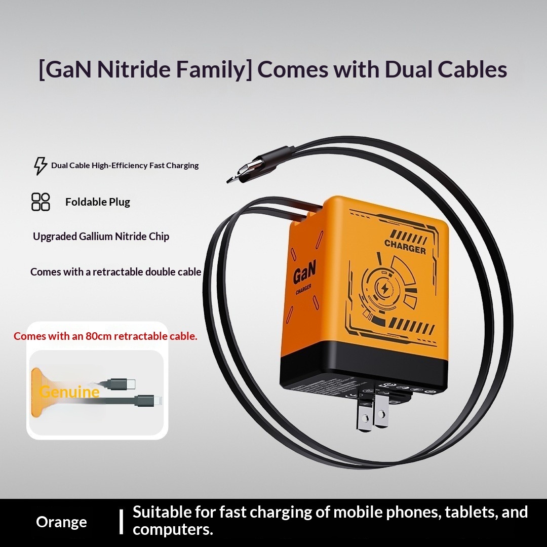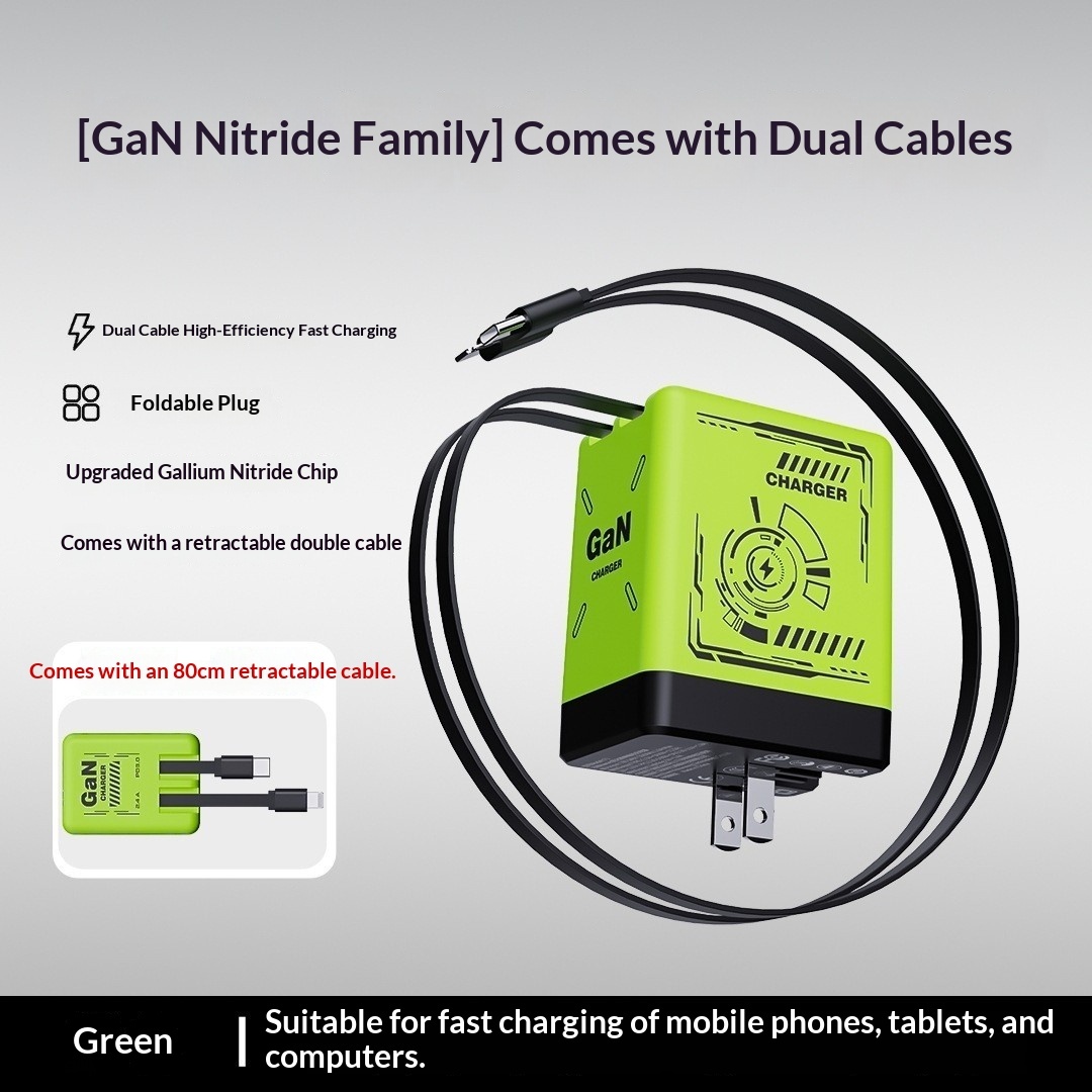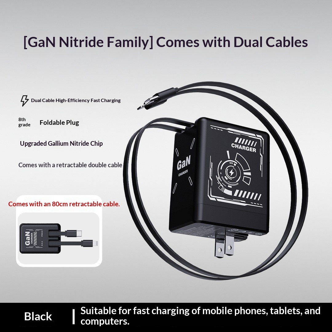 Unleash lightning-fast power with our GaN Fast Charge. Featuring a unique Mecha Wind aesthetic and an integrated telescopic data cable, say goodbye to tangled cords and hello to unparalleled convenience for all your devices.
